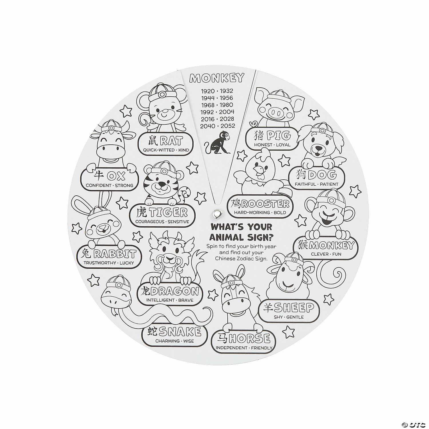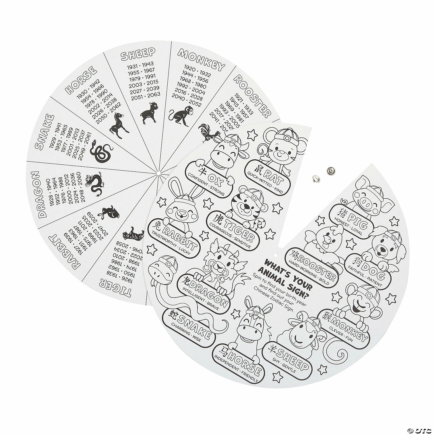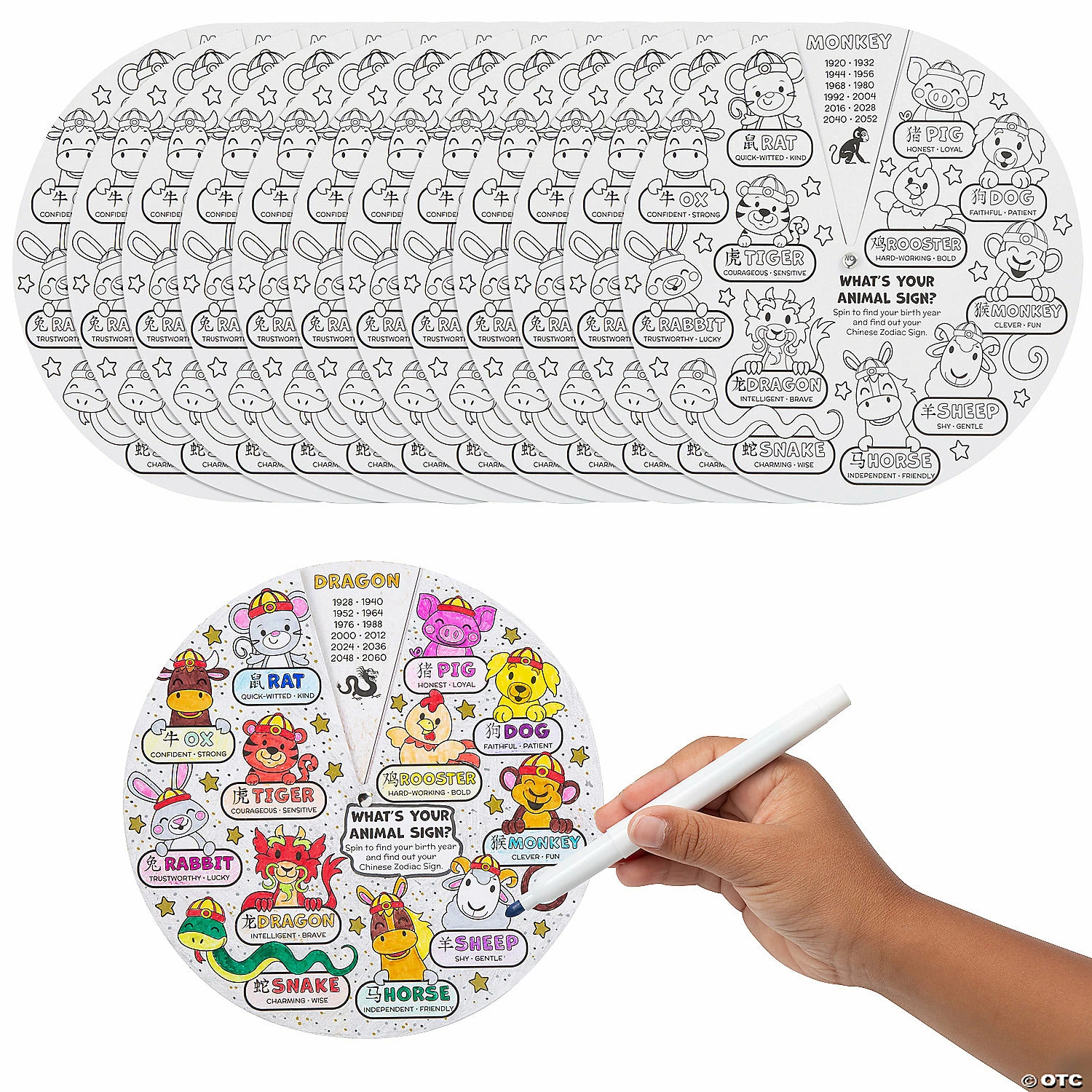 • SPARK IMAGINATION & PROMOTE SELF-EXPRESSION – Give your little artists wings with this fun coloring project. Let kids choose their colors and watch their creativity take flight!• HAVE A BLAST! – When it comes to creating art, the possibilities for fun are endless! Kids will have a blast coloring in their creations, and it’s a simple activity that can be finished in stages. Color in all the designs or leave a few strategically blank for a fun look! • ENHANCE HAND & EYE COORDINATION – Coloring involves a variety of actions including holding crayons or markers, choosing colors and sharpening colored pencils. All of these tasks help children build their hand and eye coordination.Product Description: A great activity for Chinese New Year parties as well as everyday arts and crafts projects at school, home or community events, this craft has double the fun! First, assemble the wheels and set your creativity soaring by coloring with your own markers or crayons (sold separately on this site). Then spin the wheel to discover which animal you are based on your birth year. What are your personality characteristics? Do they match up with how you really are? Spin the wheel for friends and family members to find their animals too! © OTCSize: 9″ diam.Quantity: 12 Pc.Material: Cardstock with metal brad.
