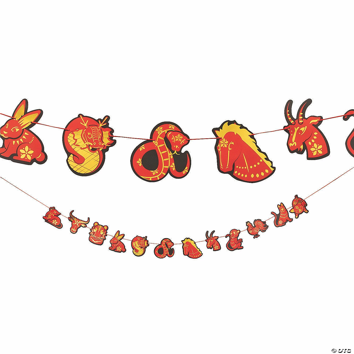 Celebrate Lunar New Year in style with this eye-catching garland. Featuring images of the animals represented in the Lunar New Year, this garland has a festive look and will be a great addition to Lunar New Year party decorations. The garland has the classic Lunar New Year colors of red and gold, making it a great choice for wall decorations for your party. Cardstock. 7 ft.