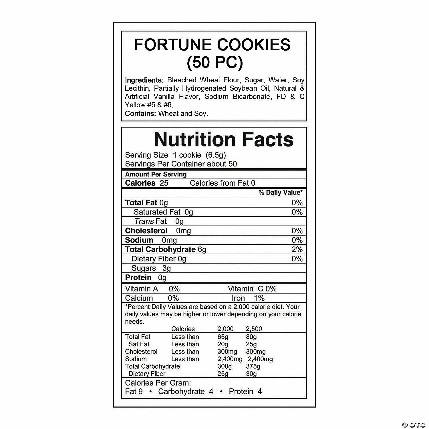 Youโll find words of wisdom hidden inside these individually wrapped fortune cookies! These classic cookies make a tasty addition to your Lunar New Year party favors and make a sweet snack, anytime. Kids and adults alike will love discovering their fortunes! (50 pcs. per unit) Total wt., 12 oz. ยฉ OTCโข Dairy-free.โข Made in the USA, Important Country of Origin Information: For certain items sold by OTC on our Web or Mobile sites, country of origin information can change and what is displayed may not be accurate or consistent with manufacturer information. For up to date country of origin information, it is recommended that you rely on product packaging or other manufacturer information.โข Nut-free. โข Edibles are non-returnable. For more information, visit our โReturn Policyโ page located on our website.โข Ingredient, nutrition, allergen and other product information are provided on our Web and Mobile sites for reference purpose only, without warranty or representation as to accuracy. Manufacturers adjust their labeling regularly and are solely responsible for the accuracy of the information. For general questions concerning these items, please contact our customer service at 800-228-0475.