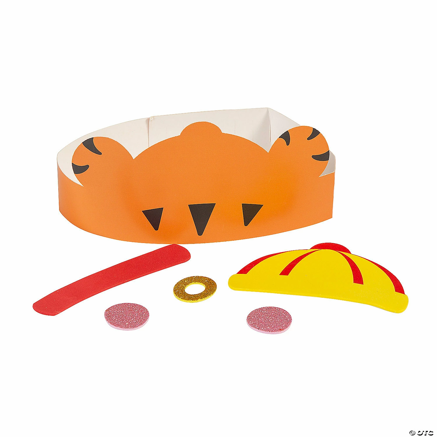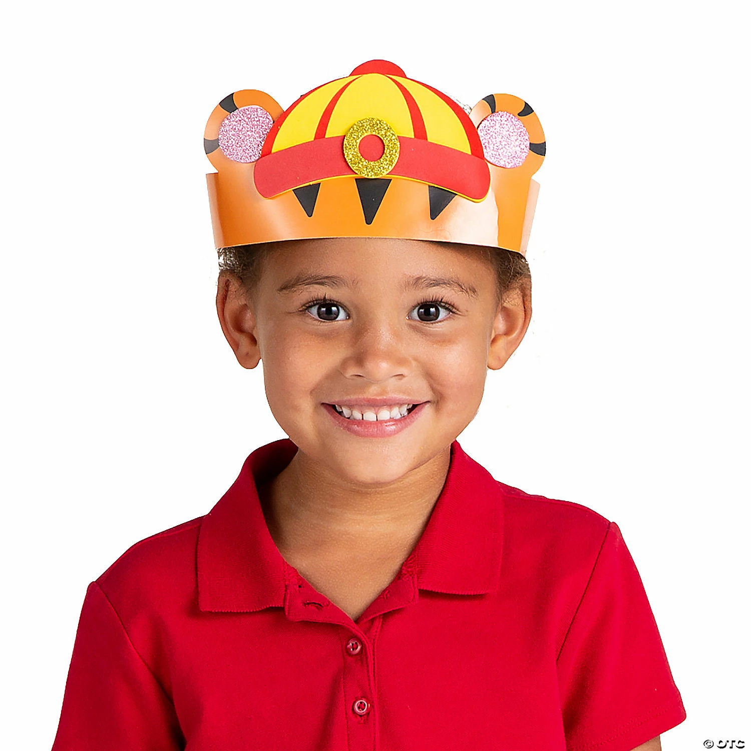 Bring in good luck and success in the new year of the tiger! This Lunar New Year party activity for kids features a tiger print and fun accessories kids can use to decorate their crown. Once the pieces are in place, they can use the tab closure to fit the crown to their head and wear throughout the Lunar New Year celebrations! Includes self-adhesive foam pieces and tab and notch closure for adjustable fit. Cardstock. 22 1/2″ x 3 1/2″ Makes 12. All craft kit pieces are pre-packaged for individual use. Kits include instructions. ยฉ OTCYear of the Tiger Crown Instructions
