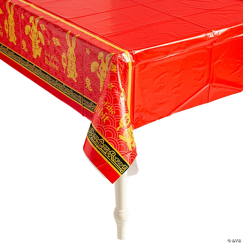 2023 is the year of the Rabbit! Celebrate the Lunar New Year with this striking table cover. Featuring bold red and gold colors and an image of a golden rabbit, this tablecloth is just right for the special occasion. Find more Chinese New Year party supplies on our site for a festive look! Plastic. 54″ x 108″ Disposable.
